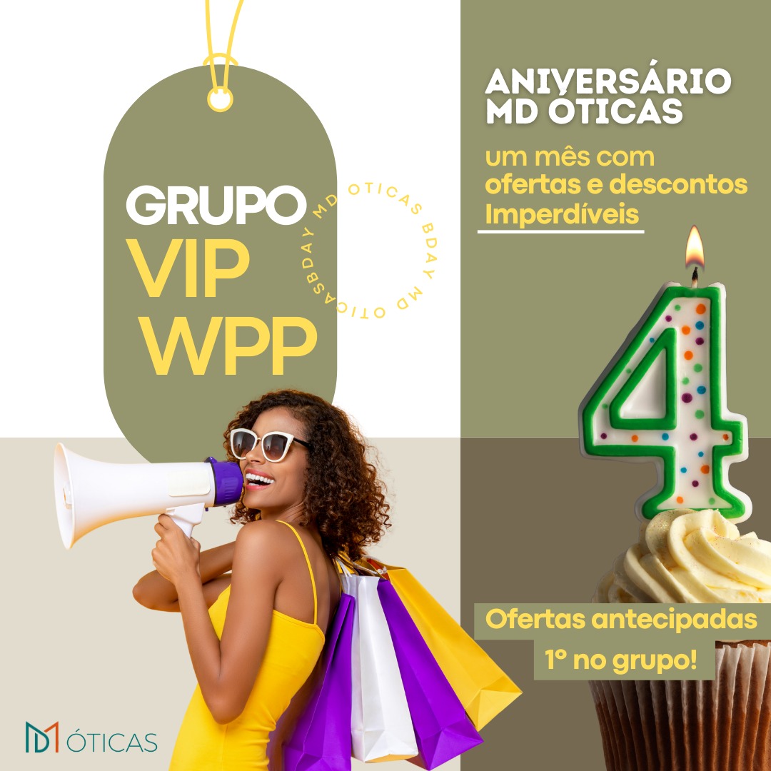 Entre em nosso grupo e participe das promoções exclusivas de Aniversário MD Óticas. Aproveite.